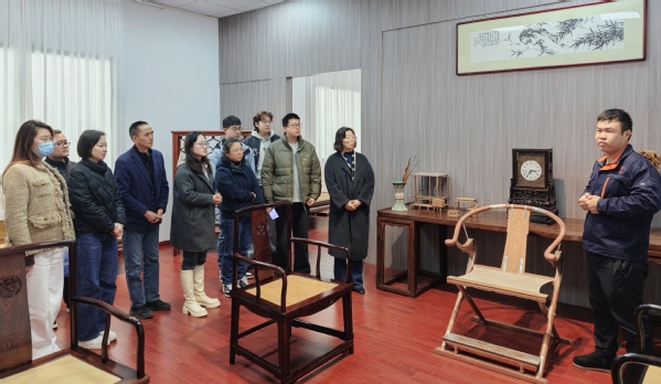 首先,党员参观崇木堂。此处是上海工匠、闵行区非遗项目“古旧木器修缮技艺”代表性传承人袁金祥大师的创新工作室。在弥漫着木香与陈列着精美器物的室内,由在该领域深耕32年袁大师的徒弟,讲述了袁大师半生坚守、与木为伴的初心故事。党员们近距离观赏了其精心复刻的明式家具珍品,从榫卯结构的精巧、木纹色泽的温润中,深刻领悟到“精益求精、执着坚守”的工匠精神所蕴含的“大美之道”。
